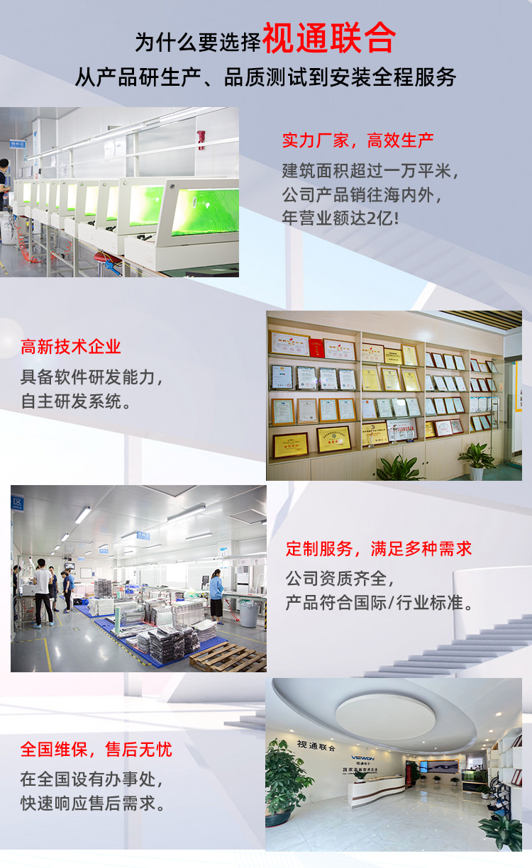 深圳市視通聯合電子有限公司成立于2012年,位于深圳市寶安區福永街道鳳凰社區嶺北五路3號,建筑面積超過一萬平米,公司產品銷售覆蓋國內外市場!視通聯合是以無縫液晶拼接、液晶拼接產品、背投產品、等離子拼接產品,液晶專顯等顯示產品和圖形控制設備的研發及銷售于一體的高新技術企業。是音視頻行業中專業...